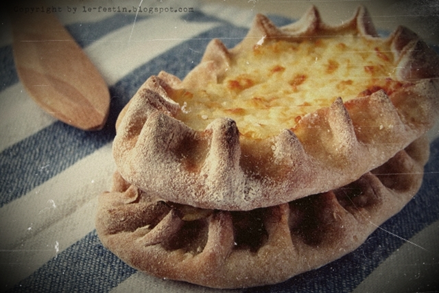 Se întinde şi cealaltă bilă de aluat şi se aşează peste zmeură ca şi capac. Eu am presat până cele două părţi de aluat s-au lipit şi apoi am modelat uşor cu o lingură pe margine. Am uns cu un amestec de apă şi melasă. Pe centru am pus o bucată din aluat sub forma hărţii Finlandei 🙂